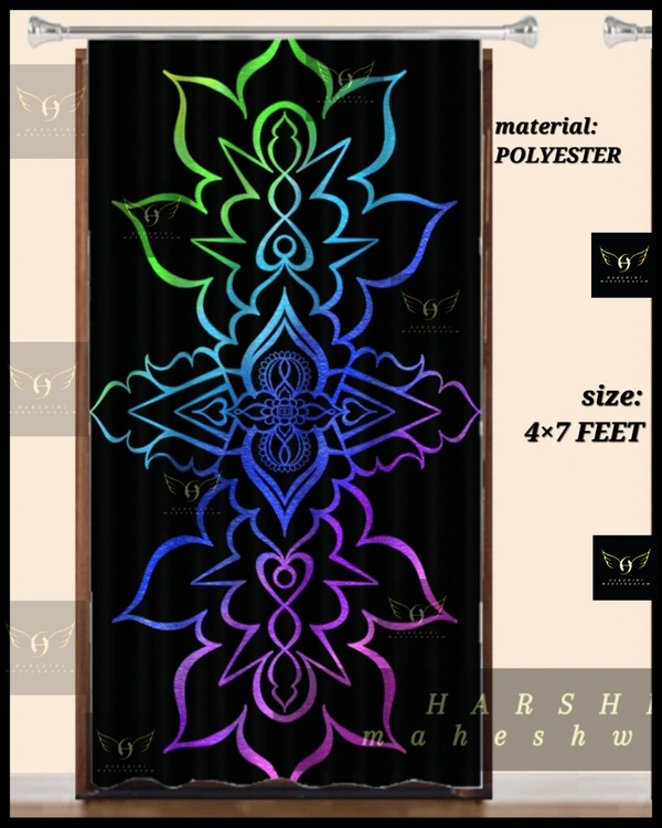 COMBO- 1 CURTAIN AND 4 CUSHION COVERS- Floral Mandala Art- By Harshini Maheshwaram