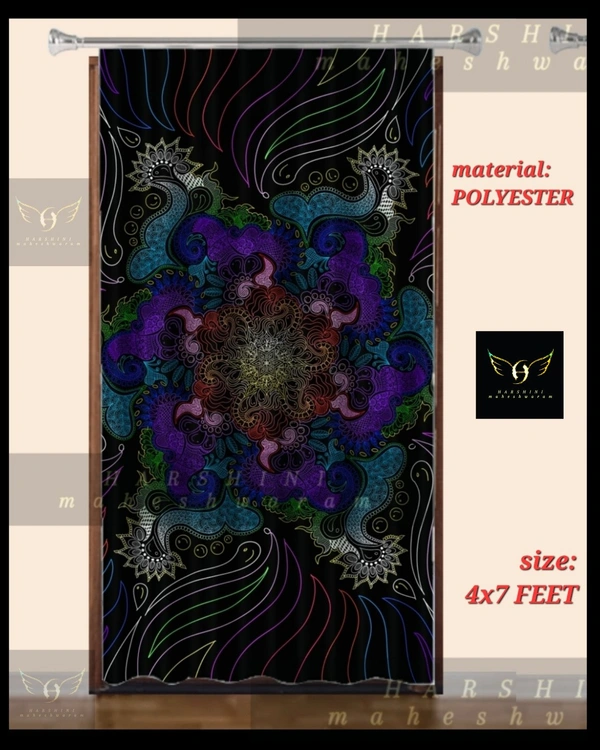 COMBO- 1 CURTAIN AND 4 CUSHION COVERS- Floral Mandala Art- By Harshini Maheshwaram
